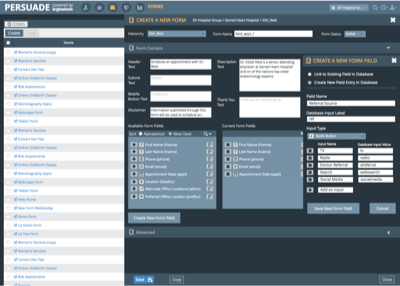 Adjustments to existing interaction patterns, like the floated slide over “form field creation” tool, make usage more intuitive. Information architecture adjustments avoided drastic design pattern changes, reducing development time.