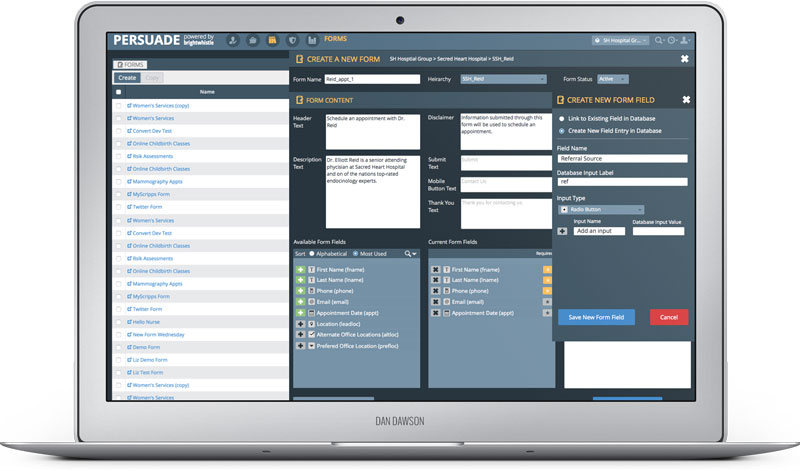Brightwhistle is healthcare marketing technology company based in Atlanta. Our task was to assess a form building tool in their lead generation platform and make usability recommendations. The task was completed over three weeks in a team environment with fellow designer Kendra Sarvadi.